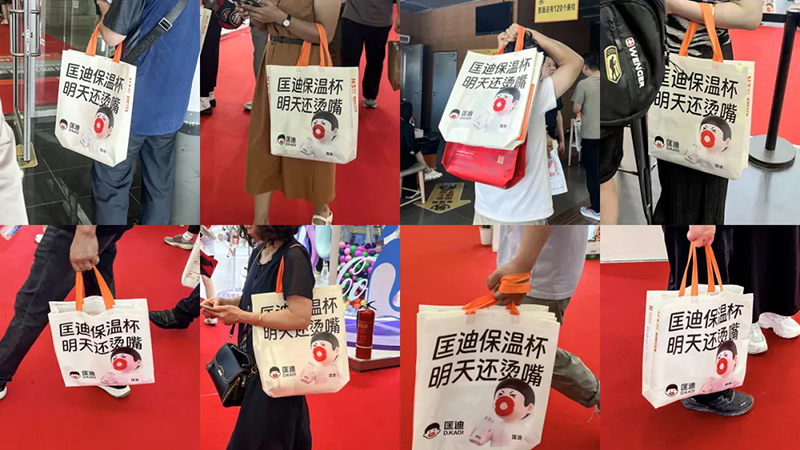 不僅如此,我們還讓所有參展者成為我們的宣傳大使。我們設計了一款展會專用的挎包,作為核心道具發送給參展者,走到哪兒都能看到背著匡迪挎包的人群。甚至有些人把它當成了日常挎包。